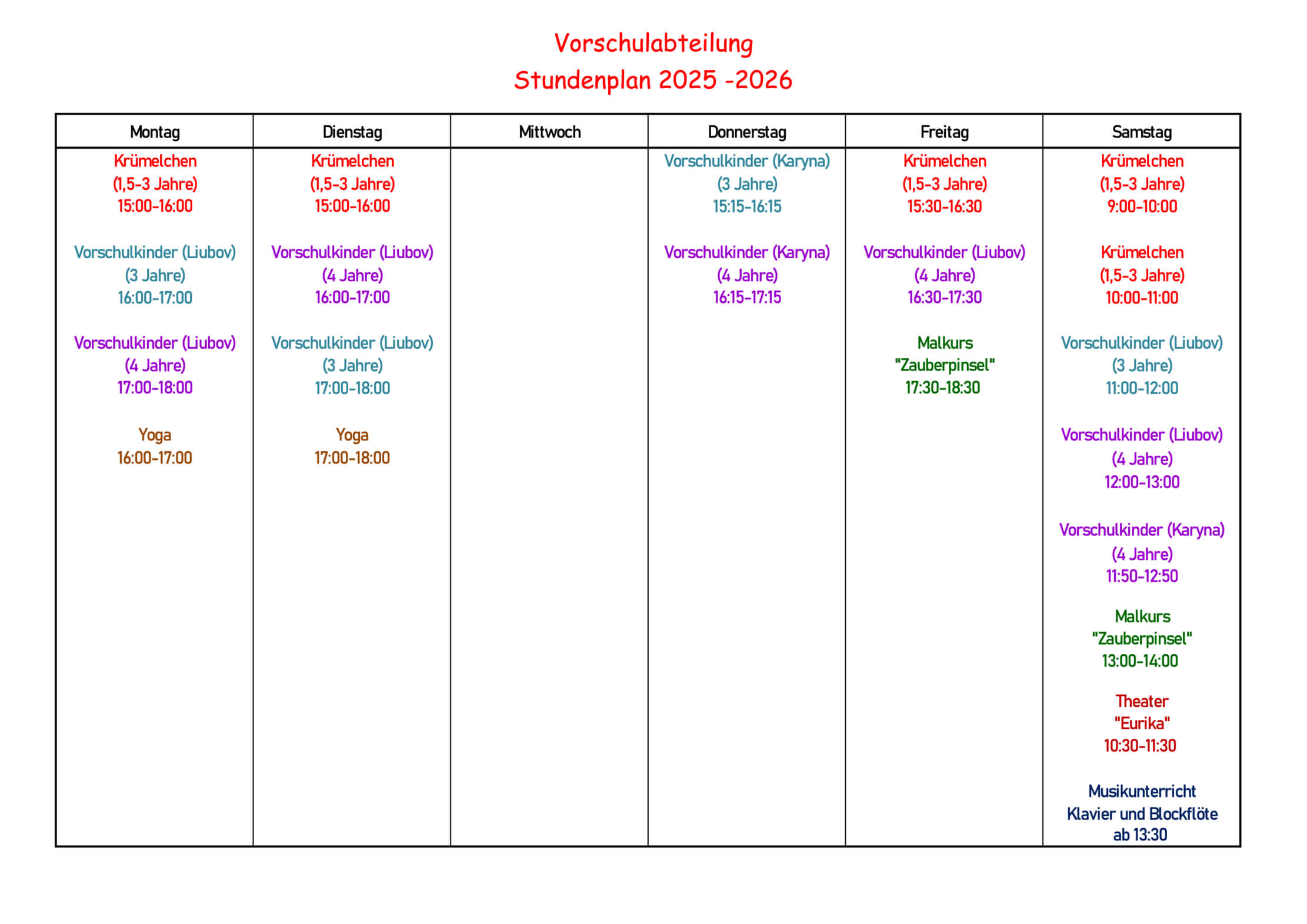 Für Kinder von 4,5 bis 5 Jahren (für diejenigen, die nicht in die "0-Klasse" unseres Zentrums gehen).