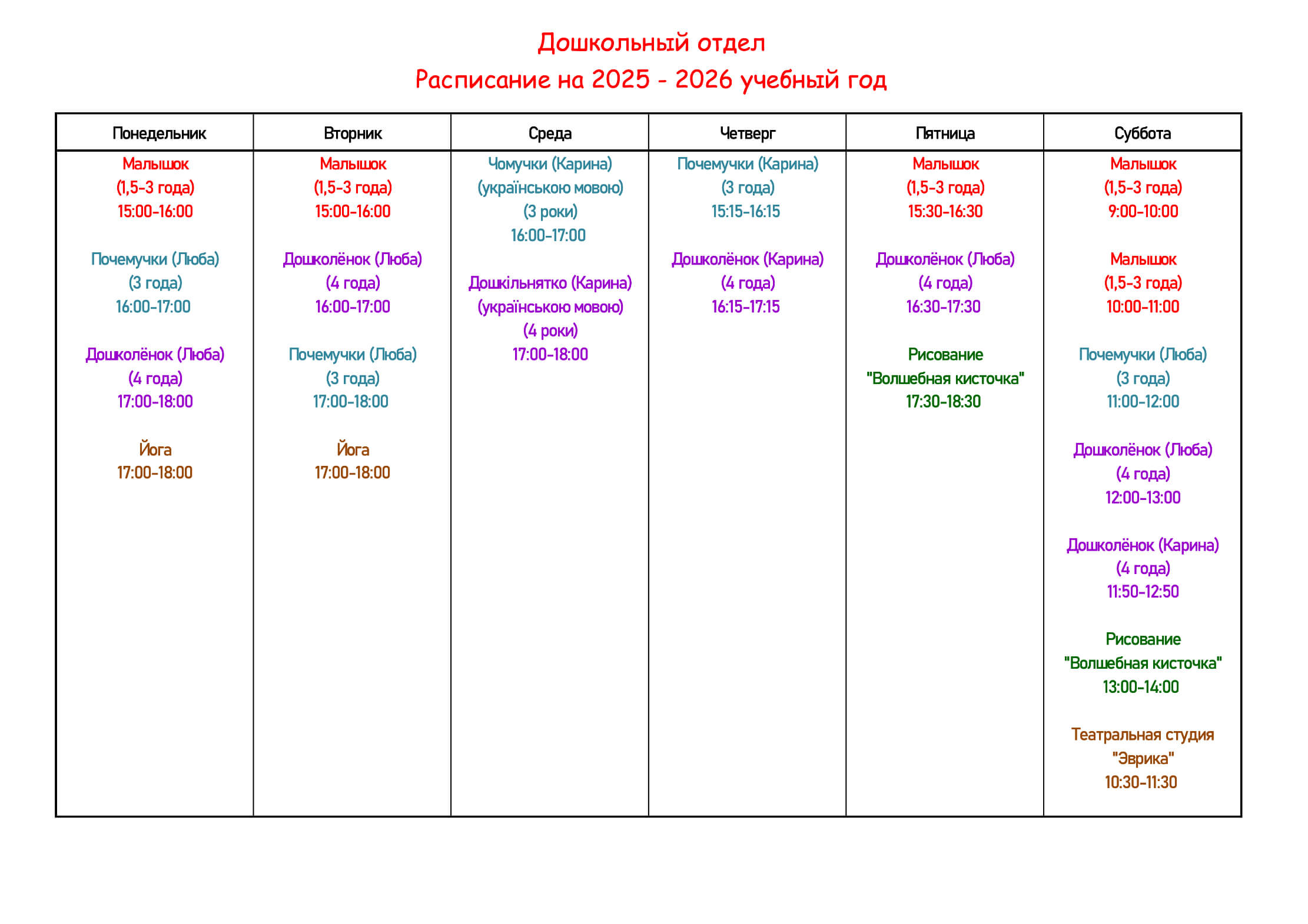 Für Kinder von 4,5 bis 5 Jahren (für diejenigen, die nicht in die "0-Klasse" unseres Zentrums gehen).